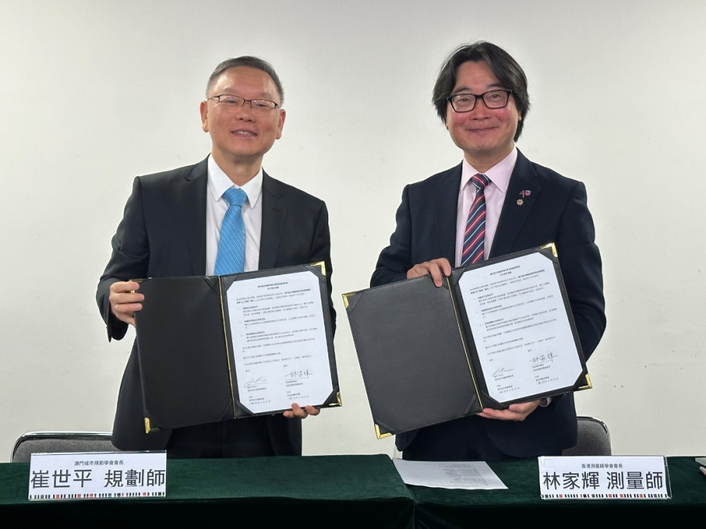 澳門城市規劃學會和香港測量師學會於2024年6月20日簽署合作備忘協議,為加強兩會之間的溝通及推動澳門香港兩地的交流與合作。